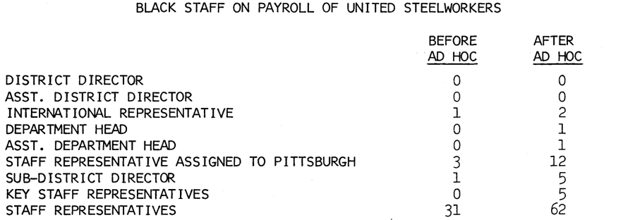 The struggle against racism in the labor movement for a long time concentrated on opening membership to blacks. Since the rise of the CIO, however, the battle against racism increasingly became one against discriminatory practices in hiring and promotion, and for greater black participation in union leadership. Since the promise held out to blacks by the AFL-CIO merger remained largely unfulfilled, black caucuses within the various unions sought to achieve a “fair share” of the benefits of membership for blacks. This concern for more “black power” in the unions was not just a matter of racial pride. In the late sixties only about a dozen unions had so much as one Negro on their governing boards, even though approximately 2 million of the 14 million union members in the AFL-CIO were black. Since Afro-Americans were so under-represented in union officialdom, their grievances were frequently neglected, and may have been co-participants in the discrimination.