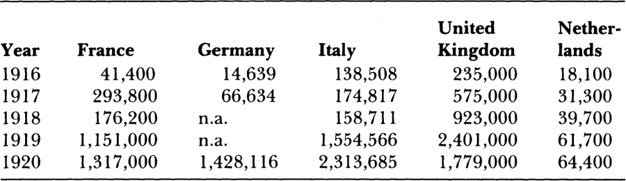 The militancy of 1917–20 was also massive and became increasingly so. The movement developed its own momentum: Beginning with some isolated, though symbolically important, strikes and mutinies in 1917, it grew to envelop most of the urban working class in Europe by 1919–20. Participation in strikes is only a crude indicator of involvement, but the increasing number of workers taking part in industrial action between 1917 and 1920 suggests the dimensions of discontent (see Table 2–1). Union membership grew correspondingly, as did the electoral pull of socialist and labor parties.
