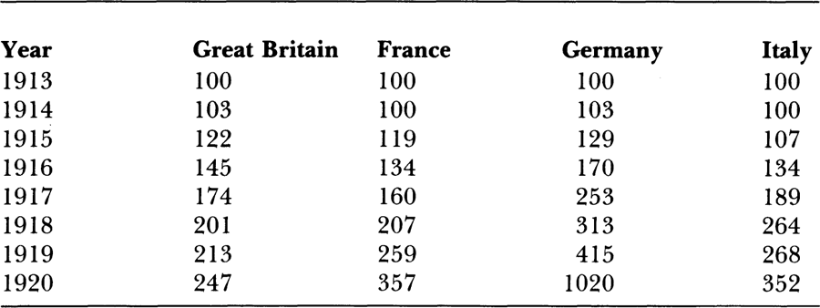 Table 2-2. Cost of Living in Europe, 1913–1920 Index (1913 = 100)