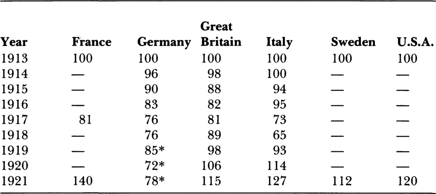 Table 2–3. The Course of Real Wages, 1913–1921 (Index = 100)